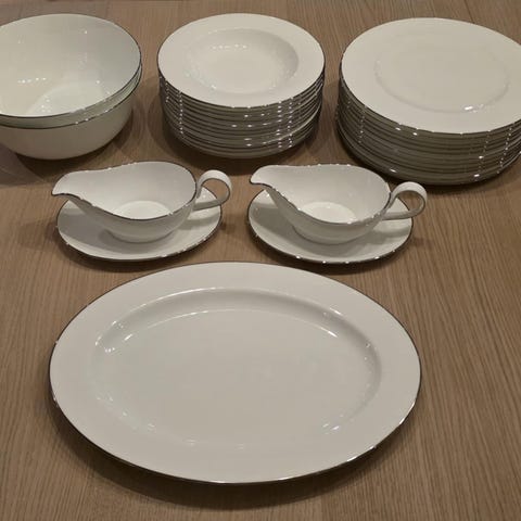 Lite brukt,ca. 2 år gammelt. 8 midd.t. Ø28cm,12 frok.t. Ø 21cm,6kaffek.m/skål,6 krus,8 suppeb.