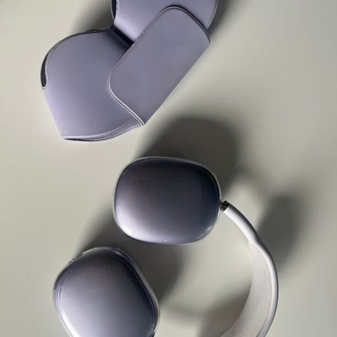 Apple AirPods Max hodetelefoner i stjerneskinn farge. Fungerer problemfritt og alt i orden. Den lyse fargen har tiltrukket seg litt skitt gjennom tiden og bøylen har litt farge som er svertet av fra caps. Sikkert mulig å få bort det aller meste med riktig metode.