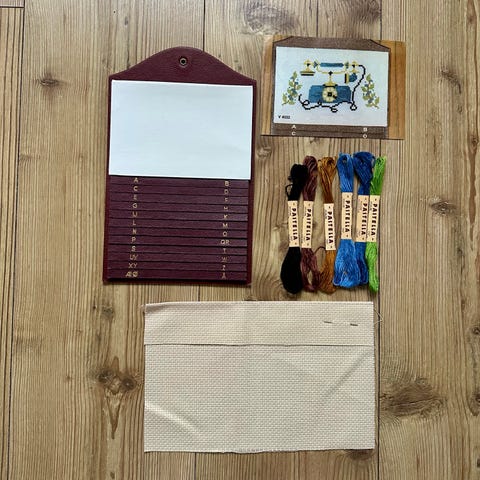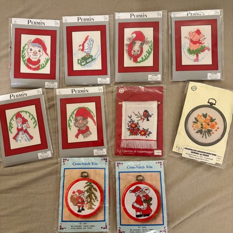 Selger en original og ubrukt vintage broderipakke fra ca. 1950–60-tallet.