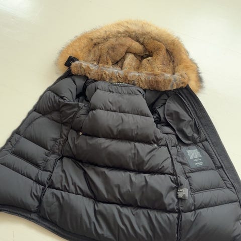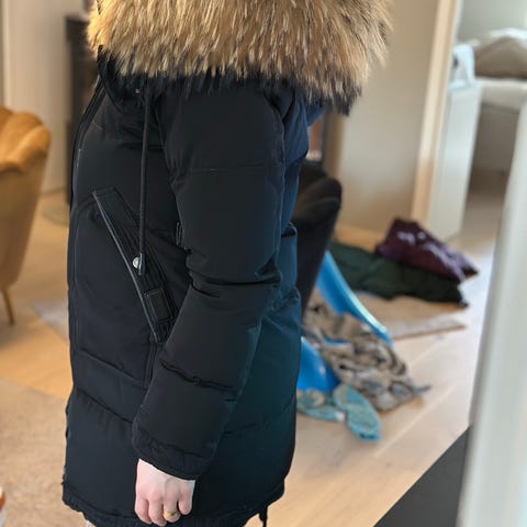 Hetten kan tas av, pels kan også tas av slik at man har hette, men uten pels.