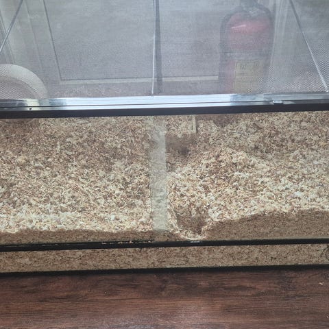 Komplett bolig: Et smart oppsett i to etasjer (plastkasse i bunn for graving og bur på toppen). Forbundet med en gjennomsiktig tunnel.