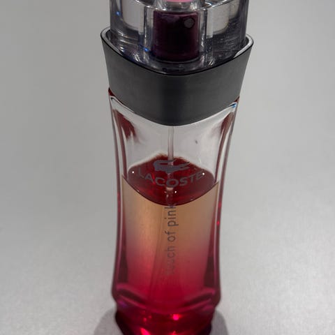 "Touch of Pink er uttrykket for en magnetisk og bekymringsløs sensualitet. En duft for selvstendige og spontane kvinner med uanstrengt sjarm og vitalitet. Den starter med lyse toner av blodappelsin, og gir plass til et feminint hjerte av sjasmin før den tørker ned til en sanselig base av vanedannende sandeltre."