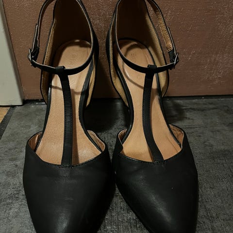 Bianco hæler i størrelse 38. Skoene har en lukket hæl og åpen tå, med høy stiletthæl. Materialet er ikke spesifisert, og skoene har en nøytral farge.