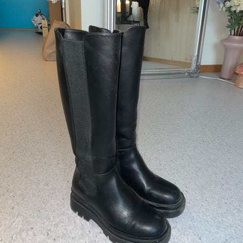 Tamaris støvler i størrelse 38 med svart farge. Laget av skinnmateriale. Støvlene har en solid såle med godt mønster for grep. Designet for kvinner. Kjøpt for 1600,- i fjor vinter.