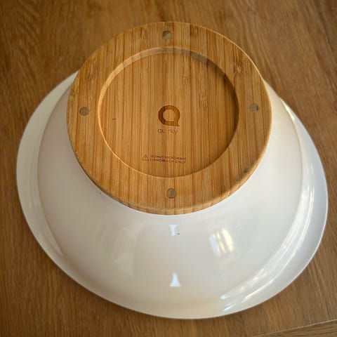 Pent brukt salatbolle selges, med serveringsbestikk.