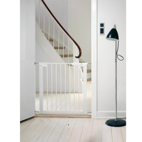 Selger to stykk Yngrì Yrg2 rullegitter med justerbar bredde fra 0 til 120cm. Designet for fleksibel plassering og universell bruk som sikkerhetsgrind. Pent brukt og alt av skruer følger med. Bilde lånt av barnashus.