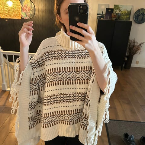 Hel lengde 95 cm, lengde under ermet er 42 cm (pluss brett nederst 4 cm). Brystvidde uner ermer 130 cm, vidde nerest 168 cm
