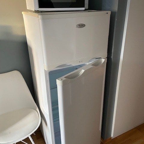 Siemens kombiskap med kjøleskap og fryser i samme enhet. Har blitt brukt i bod som et ekstra kjøleskap