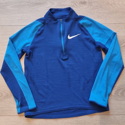 Nike fotballklær for barn i størrelse 140. Inneholder hvit og rød kortermet trøye, hvite shorts, og flere svarte treningsbukser med ulike merker som Umbro og Swix. Passer til fotballtrening og andre sportsaktiviteter.