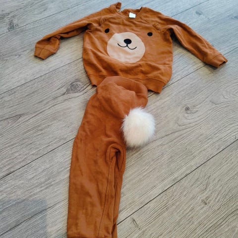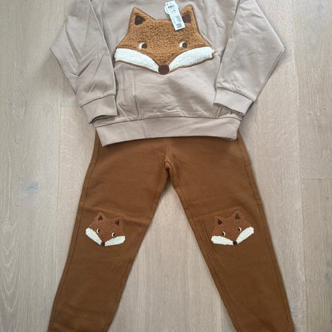 Lindex sett i oransje, laget av bomull. Passer for barn i størrelse 110 og er designet som unisex. Settet består av overdel og bukse med elastiske mansjetter, egnet for daglig bruk.