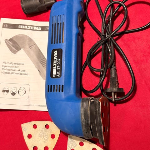 Power Line Multisliper/Fugeskjærer med effekt på 180 watt. Verktøyet har en hastighet på 21000 omdreininger per minutt. Leveres med et sett slipepapir og tilbehør, samt oppbevaringskoffert.