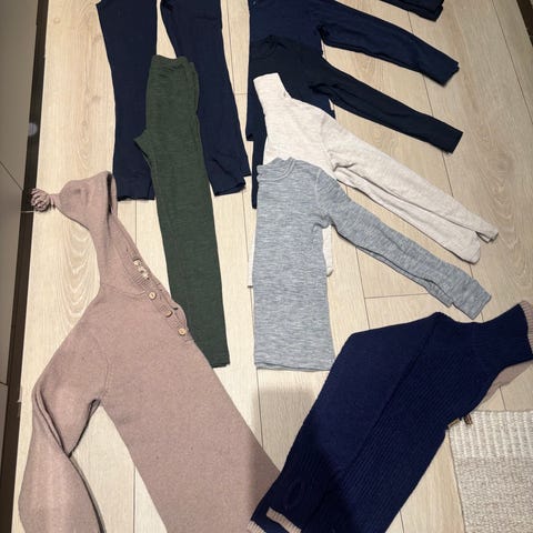 Klespakke med ulltøy i merinoull til barn str 134/140. Fra Reflex. Pent brukt uten skader eller flekker. Den ene trøyen er ubrukt og har merkelapp på. Røyk- og dyrefritt hjem. Vasket i milo.