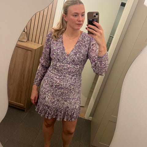 Kjolen er behagelig å ha på. Har fine detaljer og belte hemper i siden.