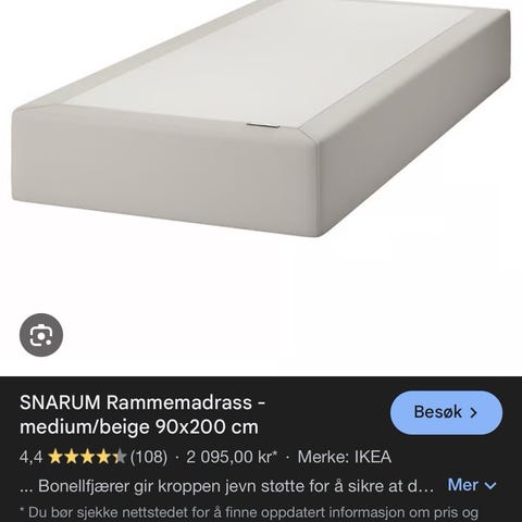 Rammemadrass 90x200 med HELT NY overmadrass.