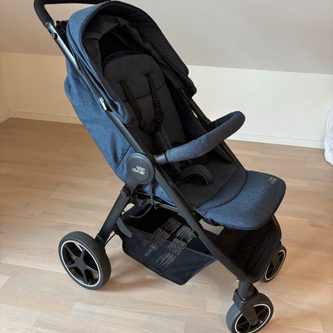 Britax trille i grå farge. Barnevognen har justerbar ryggstøtte og stor solskjerm. Barnet kan både ligge helt flatt og sitte helt oppreist, og mange posisjoner imellom. Den er veldig enkel å legge sammen med én hånd, og lett å løfte inn/ut av bil. Utstyrt med solide punkteringsfrie hjul og oppbevaringskurv under setet.