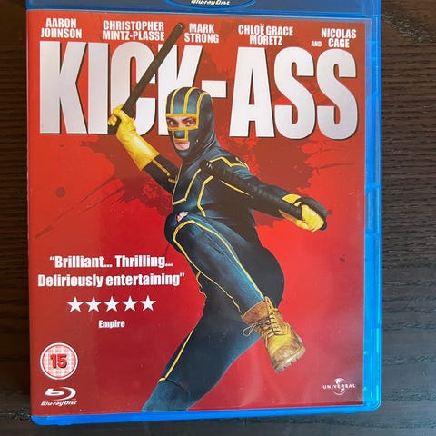 Kick-Ass Blu-ray actionfilm. Spilletid 1t 56 min. Utgitt i 2010. Inneholder bonusfunksjoner.