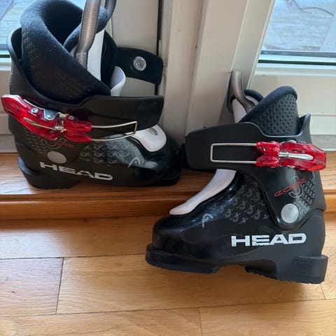 Head skistøvler i størrelse 27,5 med svart og hvit farge. Laget for å gi støtte og komfort ved alpinskiaktiviteter. Dette er en sko for små barn med skostørrelse på rundt 26.