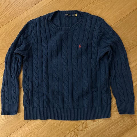 Ralph Lauren Polo genser i blå farge, laget av 100% bomull. Størrelse L, herre.