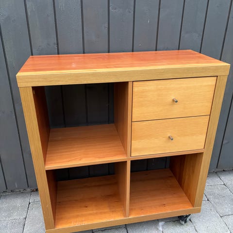 Rydder ut av hus, her er enkel og pen hylle, knapt brukt, inneholder5 hyller, en delhylle ligger oppå den øverste hylla. Må hentes, ellers kan den leveres mot 200,- på vei fra Tbg til Asker, ev.Bærum