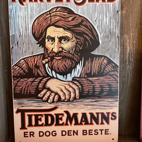 Tiedemanns Rød Metallskilt ca 20/30 cm