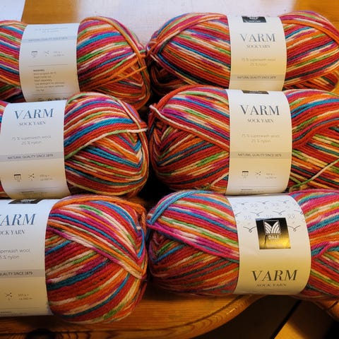 4 hele nøster inkl. ett uten bånd men er et helt nøste. Rest og uferdig prosjekt kan sendes med om ønskelig.