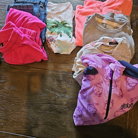 Jakke, tykk utebukse, tynn turbukse og fleecesett.