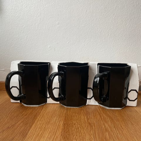 I veldig god stand. Et krus har et bitte lite nagg som kan være produksjonsfeil (se bilde).
