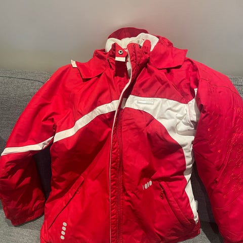 Pent brukt vinterjakke fra Reima, fin olivengrønn farge. Armene kan tas av så det blir en vest. Pent brukt, men har et lite hull i stoffet. Selges derfor billig. Hentes på Hauketo eller sendes pr post.