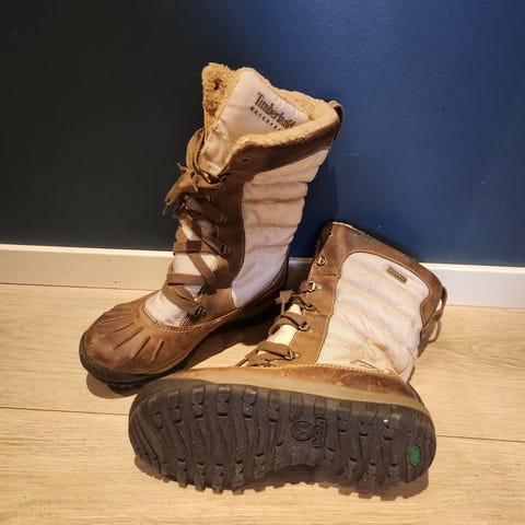 Skoene er brukt, og har noen bruksmerker (spesielt fordi de er lyse), men fungerer helt som de skal.