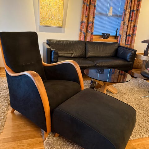Betalt plassering17 500 krVintage lenestol m/fotskammel fra Wagner. Art deco inspirert..StavangerLegg til som favoritt.