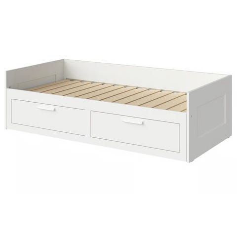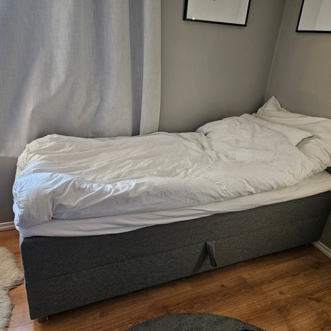 Pent brukt Brimnes IKEA dagseng med 2 skuffer. Sengen ser tilnærmet ny ut. Selges uten madrasser. (Har 2 stk, en har noen flekker, den andre defekt glidelås i trekk, kan få disse med om ønskelig)