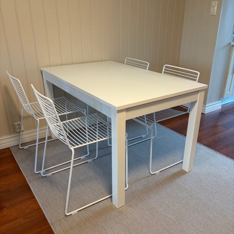 Spisebordet er i god stand- lenke til Ikea's side: https://www.ikea.com/no/no/p/laneberg-uttrekkbart-bord-hvit-60416138/