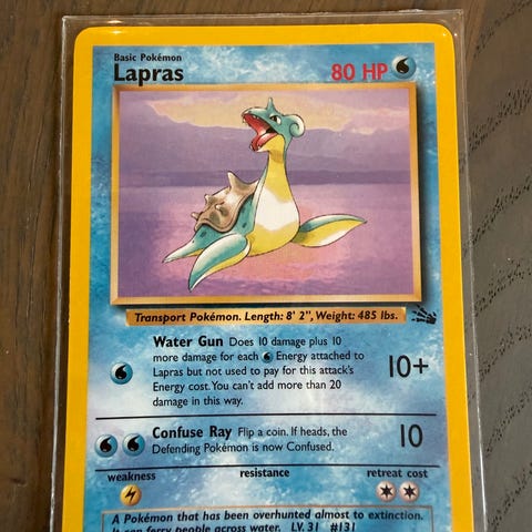 Selger originalt Pokémon-kort: Moltres – Fossil (1999).