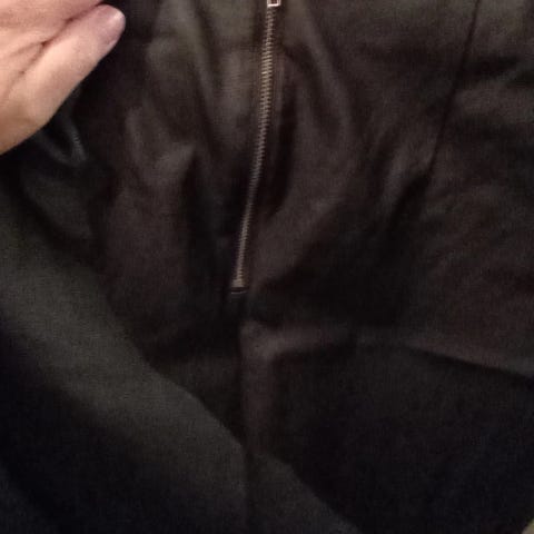 Kort skjørt merket str 14 Gossip London. Knapp og giledlås bak. Vidde nederst 100 cm, lengde 50 cm, livvidde 66 cm, foret, hofteleddet 90 cm ved nedre glidelås Kr 200,-