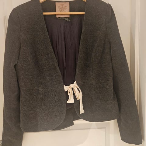 Strikket genser til salgs. 500kr. Jackiegenser strikket i myk pågugl, Line Langmo. Str m. Den er bukt to ganger, fremstår som ny.