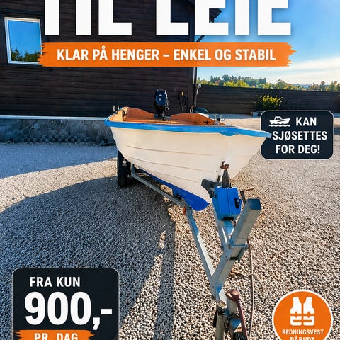 900 kr🚤 Opplev sjøen – enkel båt klar på henger (kan sjøsettes for deg)RandabergLegg til som favoritt.