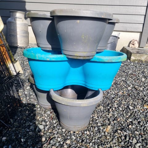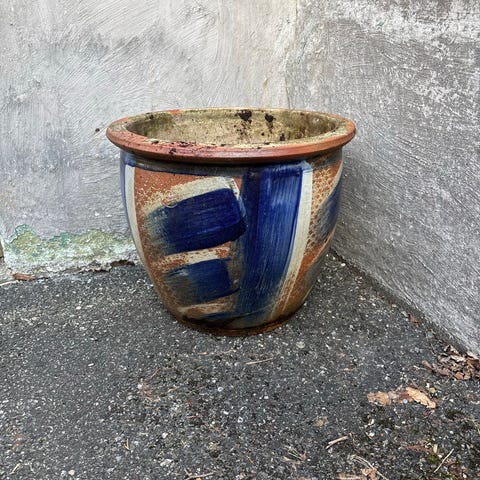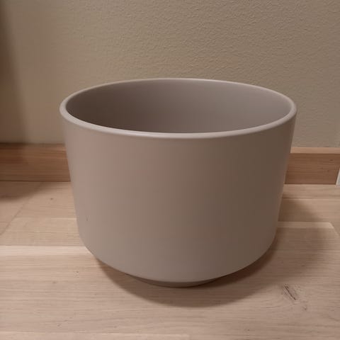Jeg gir bort en IKEA blomsterpotte i grå farge.