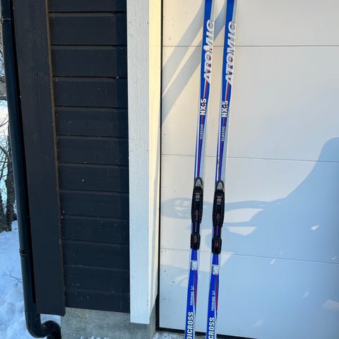 Smørefrie ski og staver til junior. Skostørrelse ca 37-38. Skilengde 157 cm.