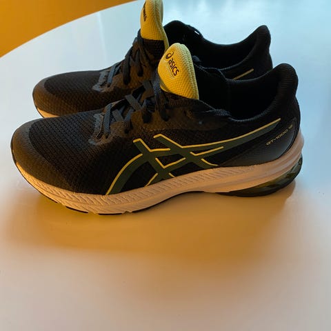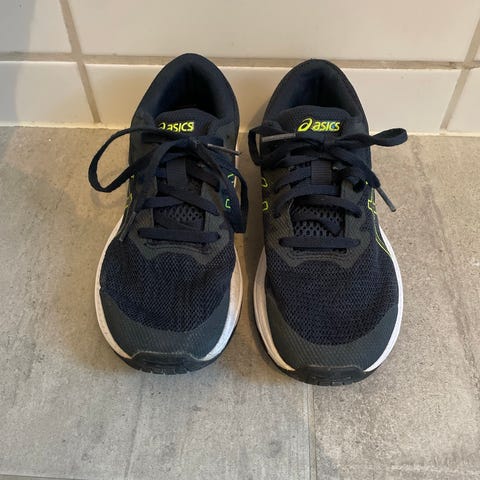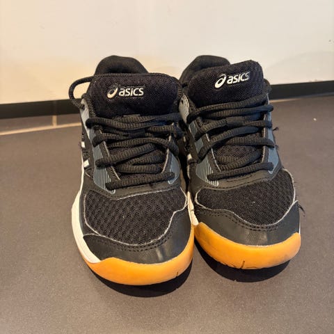 Asics unisex sko i størrelse 38. Skoene har en svart farge og er laget i materialer egnet for barn. Blir som nye etter en runde i vaskemaskin
