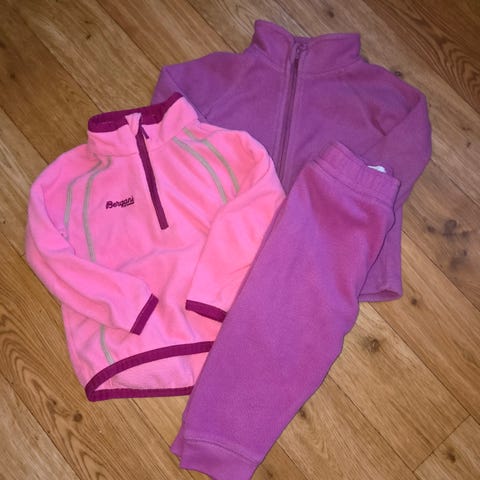 Selger fleeceklær fra stormberg i størrelse 80 og en fleecegenser fra Tiny trolls i størrelse 92