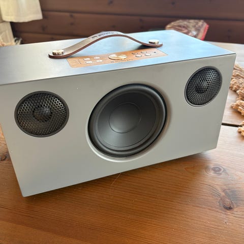 Selger en Audio Pro Addon T10 (2. generasjon) i sort. Høyttaleren fungerer som den skal og spiller veldig bra. Noen bruksmerker på toppen og bak, som vist på bildene.