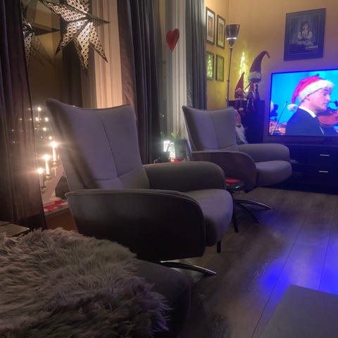 Stolen er med sving og rygg kan legges ned.