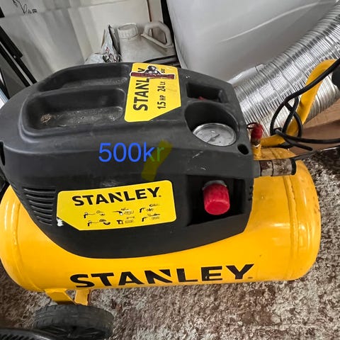 - Trykkluftsverktøy 5 deler (luftpåfyller med manometer, blåsepistol, ca 5 meter spiral slange, Sprøytepistol med kopp for væske, og malingssprøyte med kopp for maling, Sprøytepistol og malingssprøyte ubrukt)