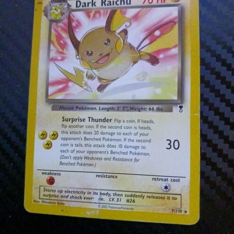 Selger originalt Pokémon-kort: Raichu – Base Set Holo (1999).