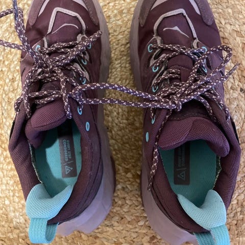 Hoka One One Fottursko i størrelse 37 og 1/3 grå farge, dame. Designet for fottur med slitesterkt materiale og god såle for variert terreng. Ikke brukt, selges da jeg har andre sko jeg bruker.