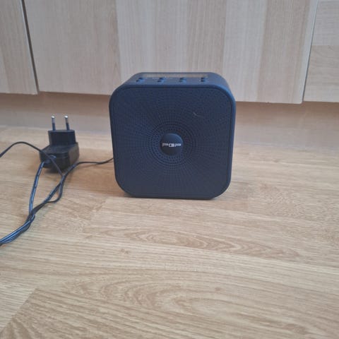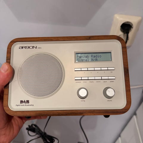 Argon DAB-radio i grønn farge. Radioen har digitalt mottak for DAB og FM, og inkluderer en høyttaler, display, og flere kontrollknapper. Den har også en teleskopantenne på baksiden for bedre mottak.