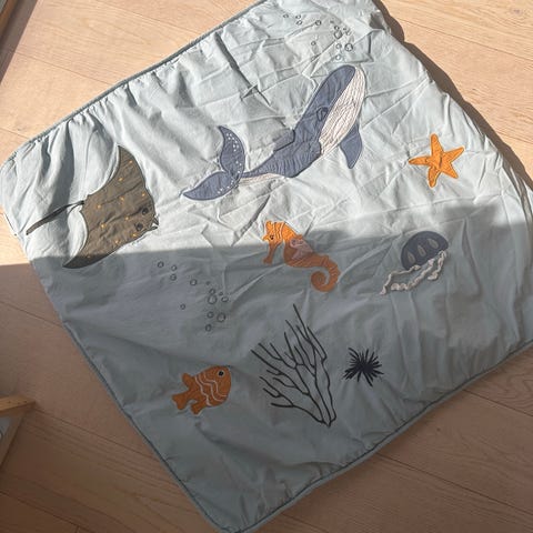 Flexa barnerom teppe med bilbane motiv. Laget av 100% bomull. Produktet har en lys blå bakgrunn med fargerike biler og veier. Utstyrt med dobbel borrelås for enkel montering eller feste.Brukt på etageaeng.æ