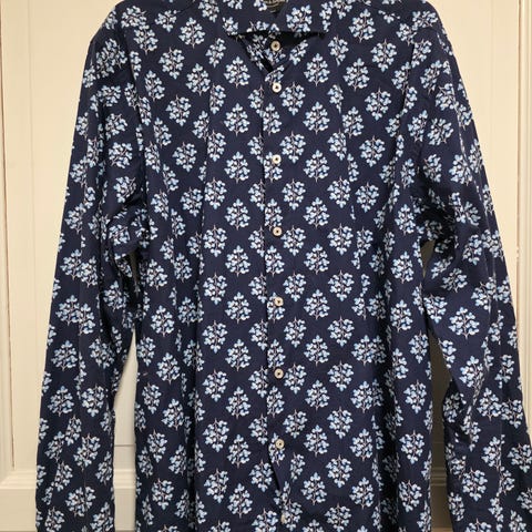 Massimo Dutti flerfarget skjorte. Blå med blomster mønster i farge blå, rød og hvit. Skjorten er lite brukt,