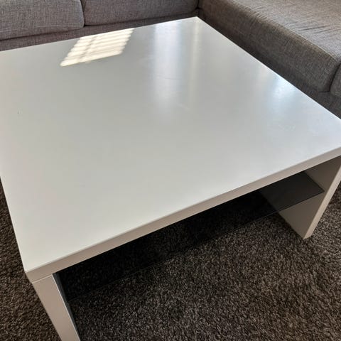Pent brukt sofabord med skuff å lokk med rom under. Perfekt til spill, lader, fjerkontroll pc ol