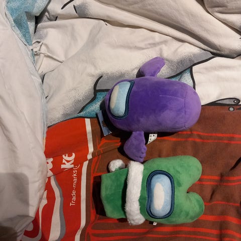 Super Mario Yoshi og Among us kosedyr. Pent brukt uten anmerkninger.